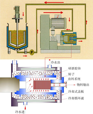 可實現(xiàn)低溫研磨 縮短漿料在磨腔內(nèi)的滯留時間,有效抑制溫度上升。通過循環(huán)冷卻水的冷卻,可實現(xiàn)低溫研磨。 |